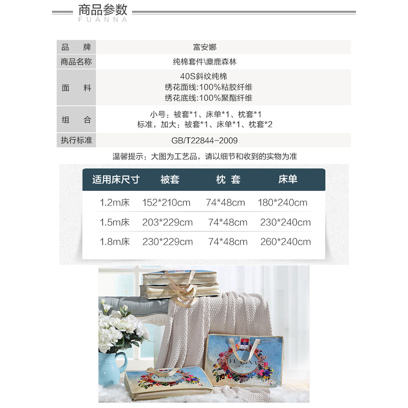 麋鹿森林 床单三件套(被套1件床单1件枕套1件)(适合1.2米床)【纯棉/灰】 |