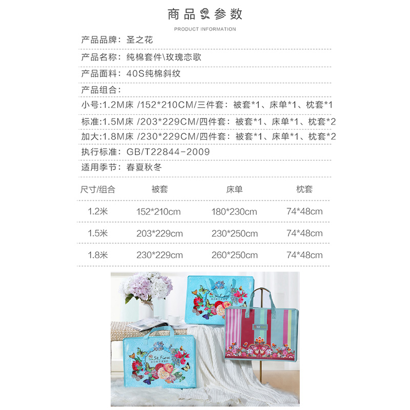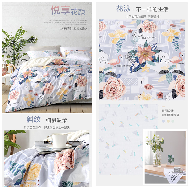 玫瑰恋歌 床单四件套(被套1件床单1件枕套2件)(适合1.5米床)【纯棉/灰】 |