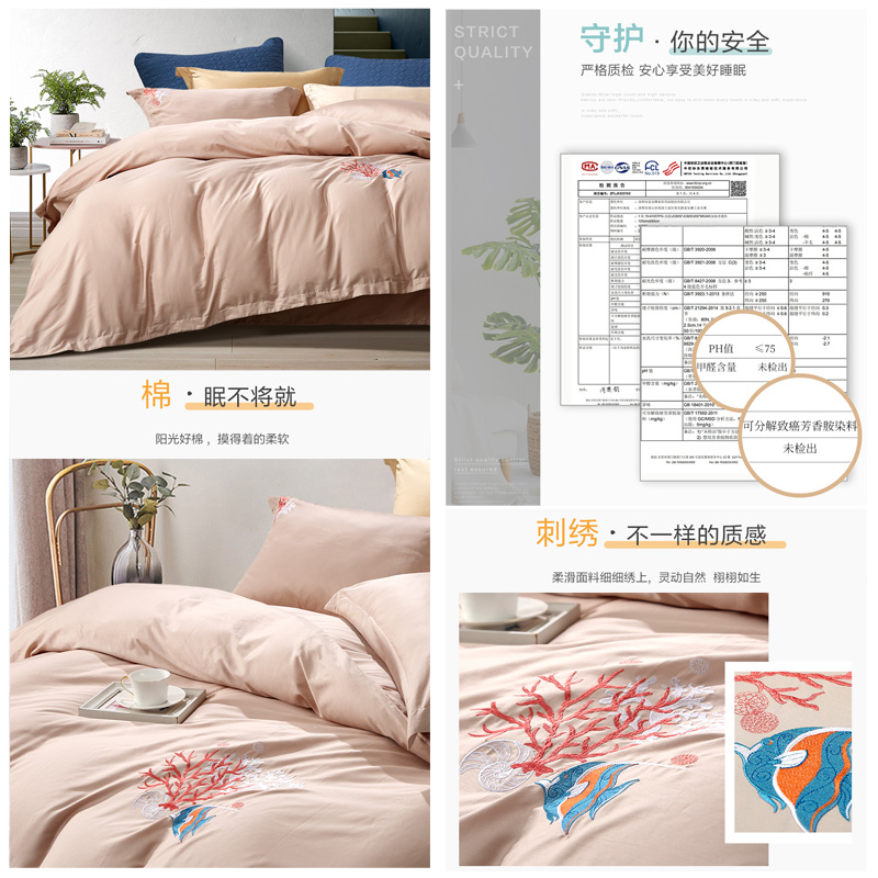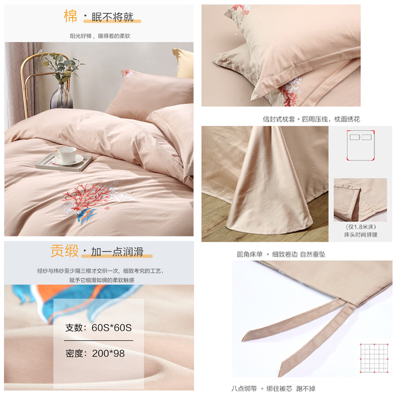 海洋奇缘 床单四件套(被套1件床单1件枕套2件)(适合1.5米床)【纯棉/浅黄】 |