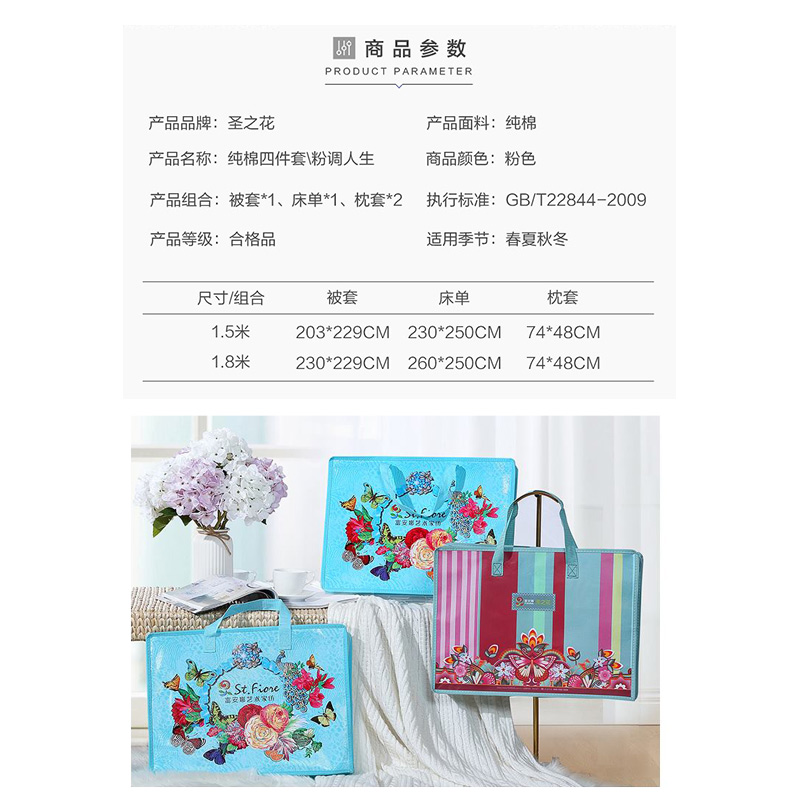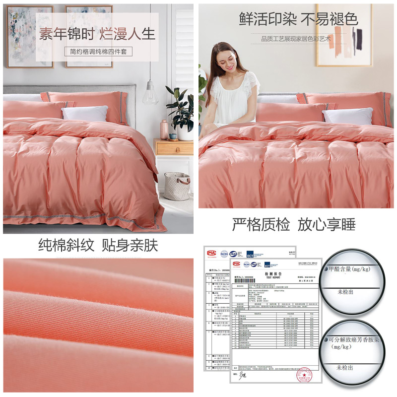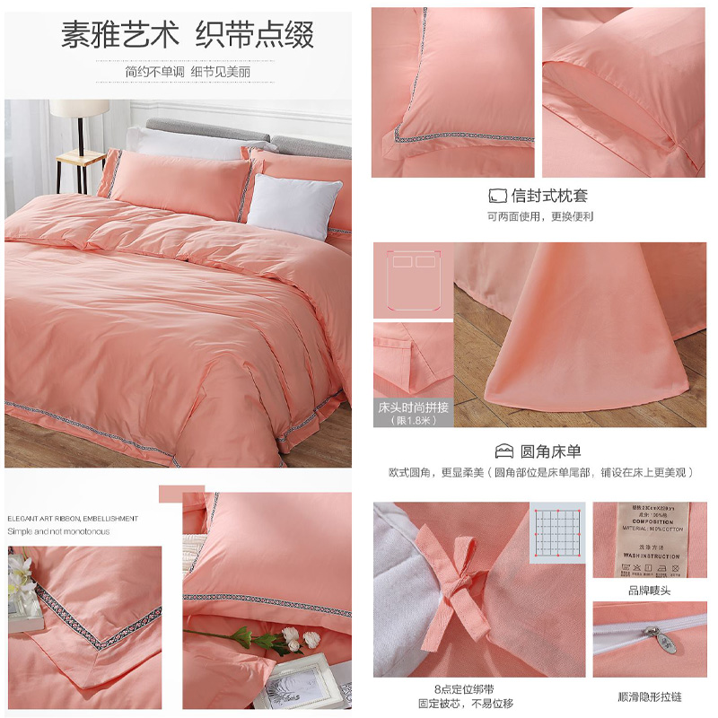 粉调人生 床单四件套(被套1件床单1件枕套2件)(适合1.5米床)【纯棉/粉】 |