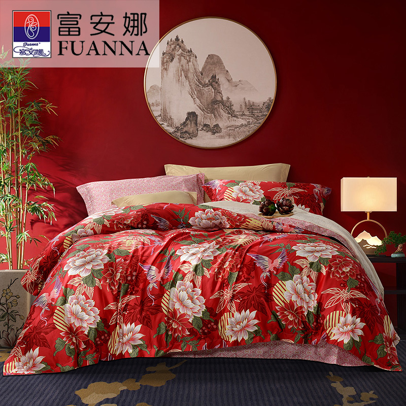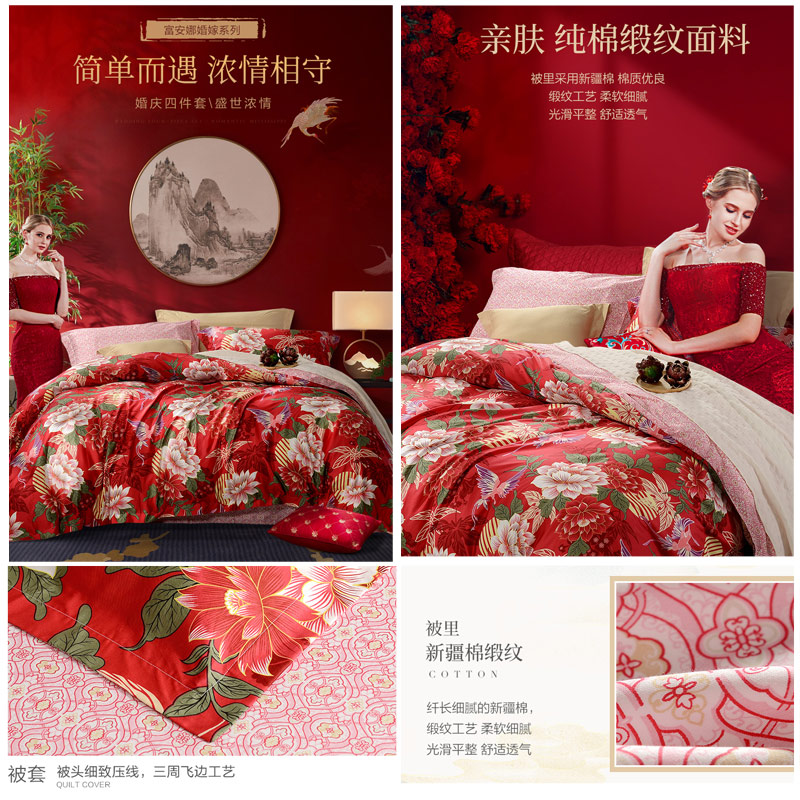 盛世浓情 床单四件套(被套1件床单1件枕套2件)(适合1.8米床)【纯棉缎纹/红】 |