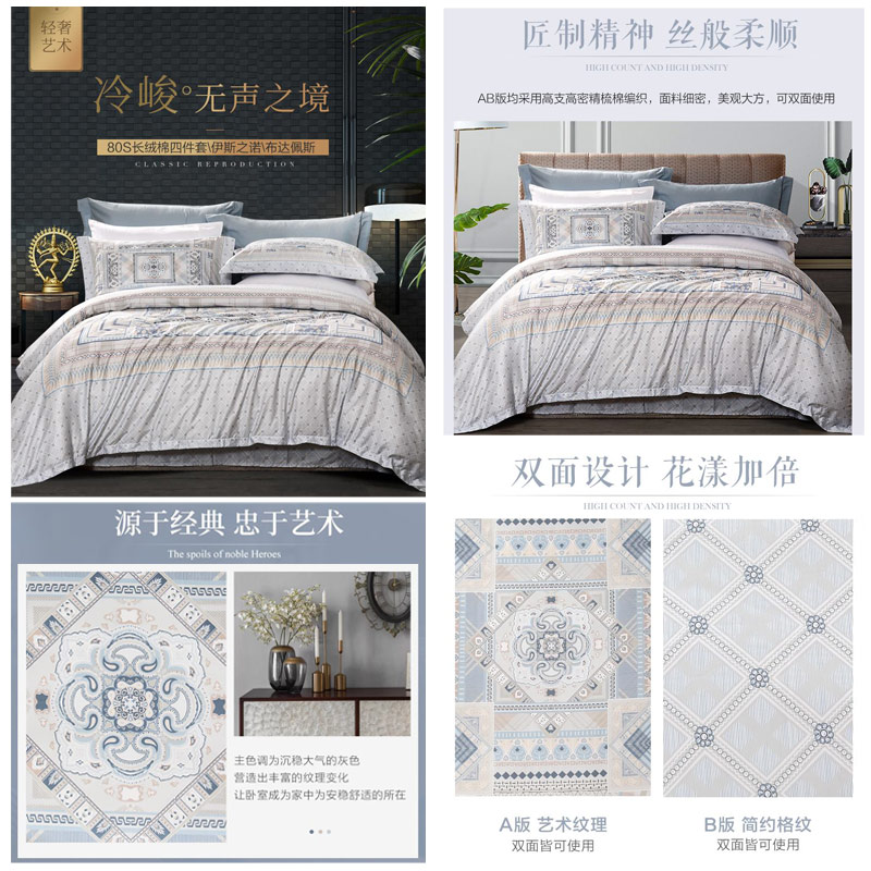 伊斯之诺 床单四件套(被套1件床单1件枕套2件)(适合1.8米床)【长绒棉/灰】 |