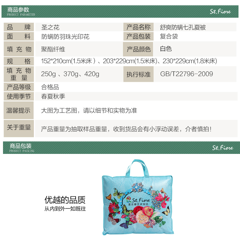 舒爽防螨七孔夏被(夏被1件)(适合1.5米床)【面料:聚酯纤维;填充:聚酯纤维/白】 |