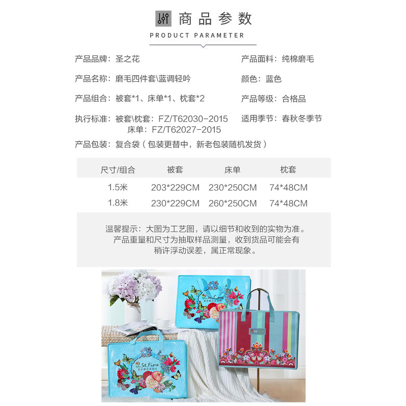 蓝调轻吟 床单四件套(被套1件床单1件枕套2件)(适合1.5米床)【纯棉磨毛/蓝】 |