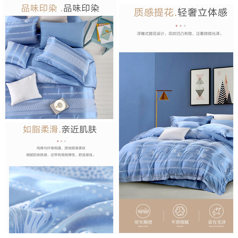 洋畔之旅 床单四件套(被套1件床单1件枕套2件)(适合1.8米床)【A版:涤棉提花;B版:纯棉/蓝】 |