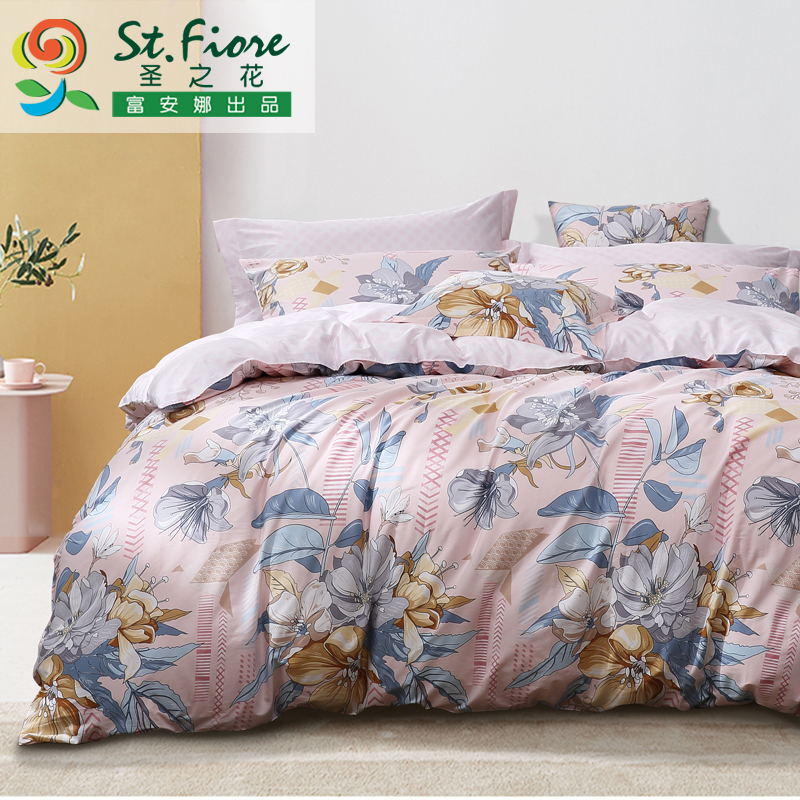 春日初妆 四件套(被套1件床单1件枕套2件)(适合1.5米床)床单【纯棉/粉】 |