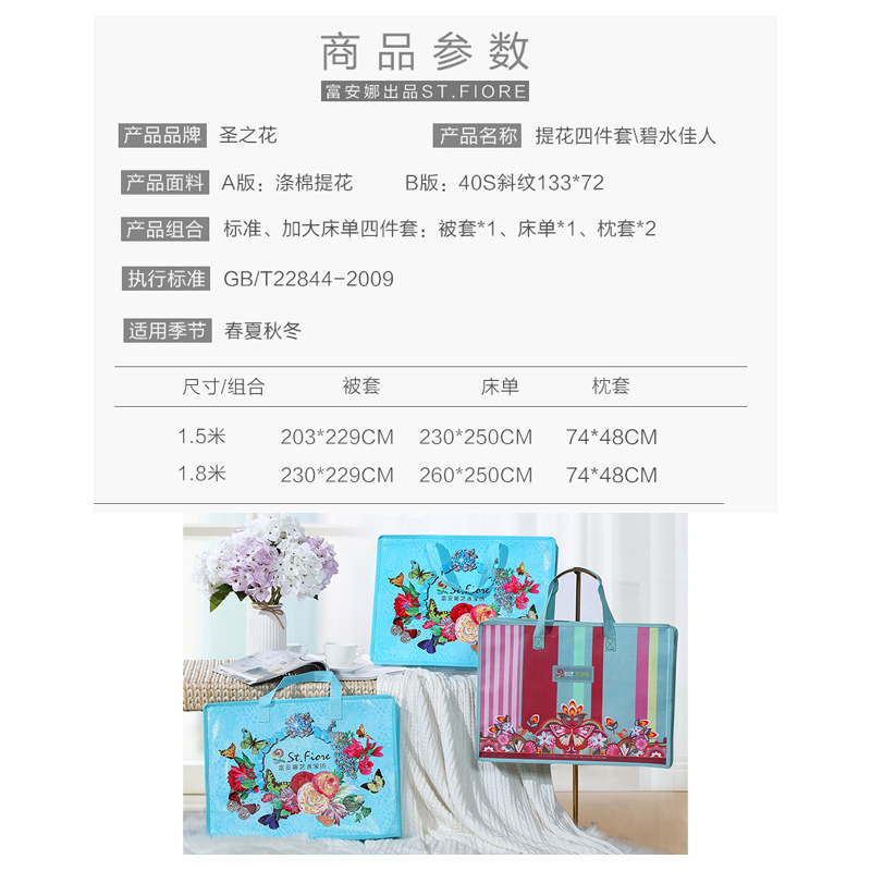 碧水佳人 床单四件套(被套1件床单1件枕套2件)(适合1.5米床)【A版:涤棉提花;B版:纯棉/绿】 |