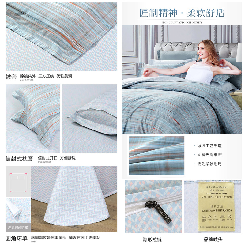 简慕 床单四件套(被套1件床单1件枕套2件)(适合1.8米床)【纯棉缎纹/蓝】 |