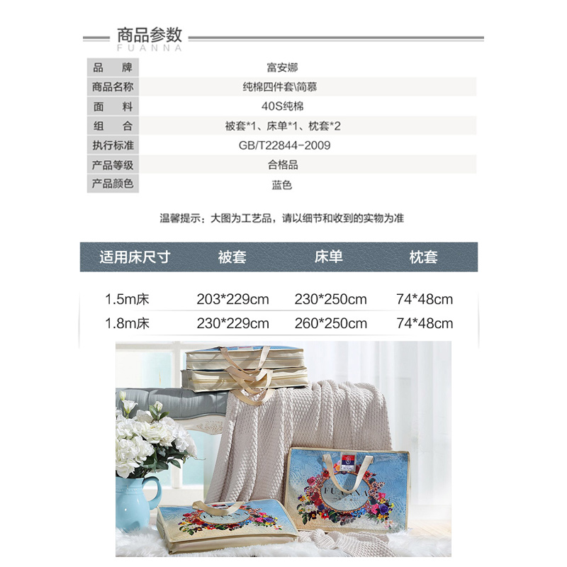 简慕 床单四件套(被套1件床单1件枕套2件)(适合1.5米床)【纯棉缎纹/蓝】 |