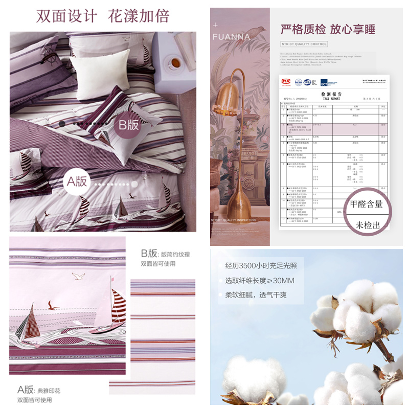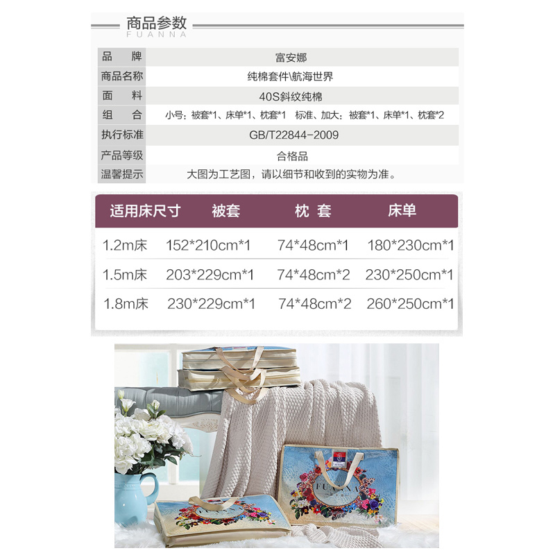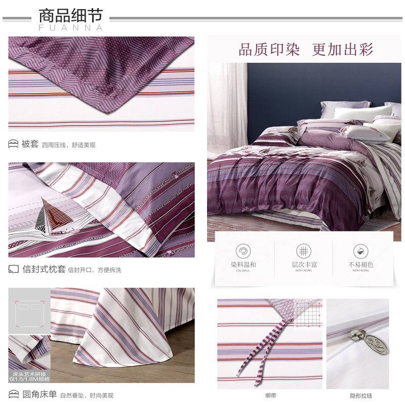航海世界 床单三件套(被套1件床单1件枕套1件)(适合1.2米床)【纯棉/紫】 |