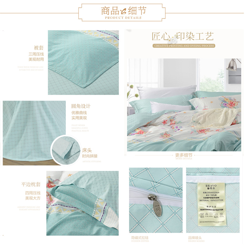 粉红乐夏 床单四件套(被套1件床单1件枕套2件)(适合1.8米床)【纯棉/蓝】 |