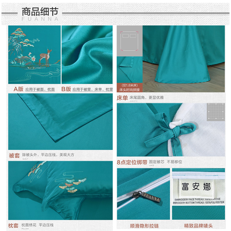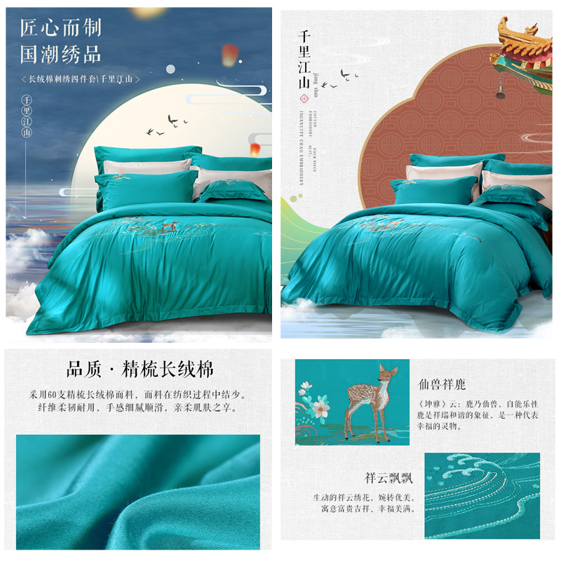 千里江山 床单四件套(被套1件床单1件枕套2件)(适合1.8米床)【精梳棉/绿】 |