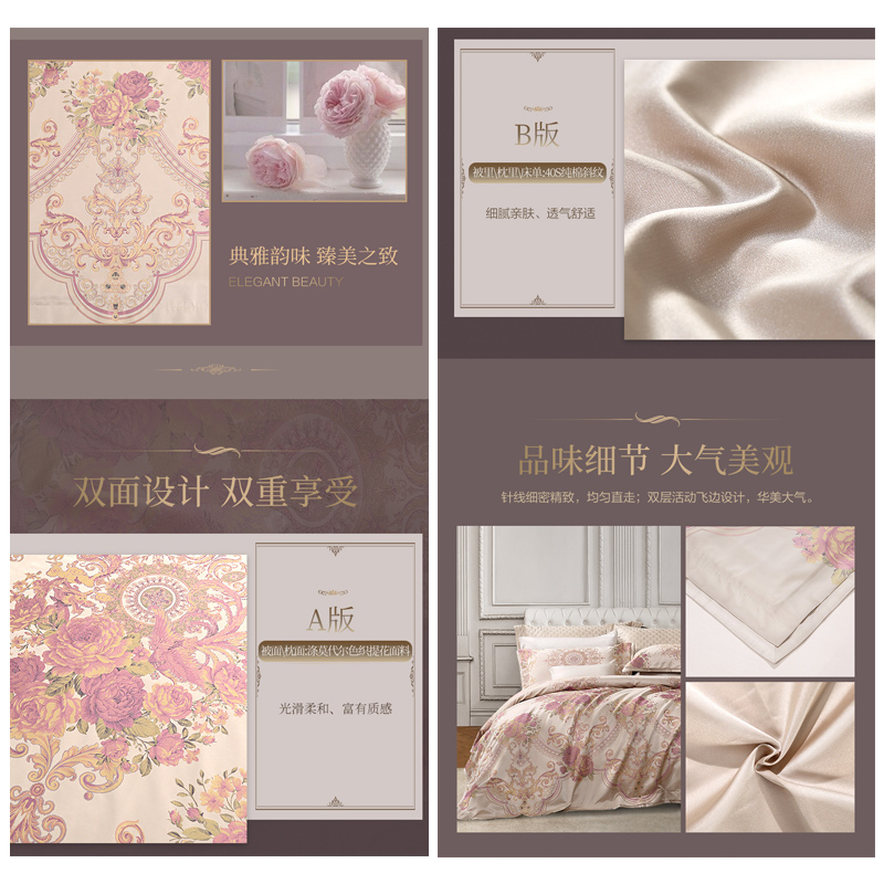 情迷欧若拉 床单四件套(被套1件床单1件枕套2件)(适合1.8米床)【A版:涤莫代尔色织提花面料;B版:纯棉/浅黄】 |
