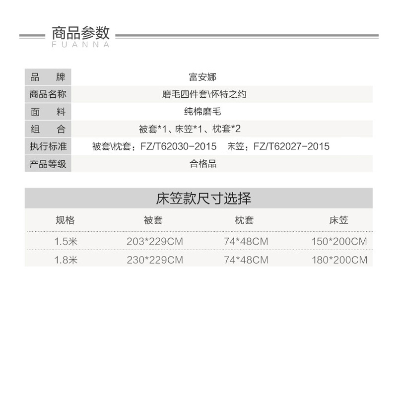 怀特之约床笠四件套(被套1件床笠1件枕套2件)(适合1.8米床)【纯棉磨毛/蓝色】 |