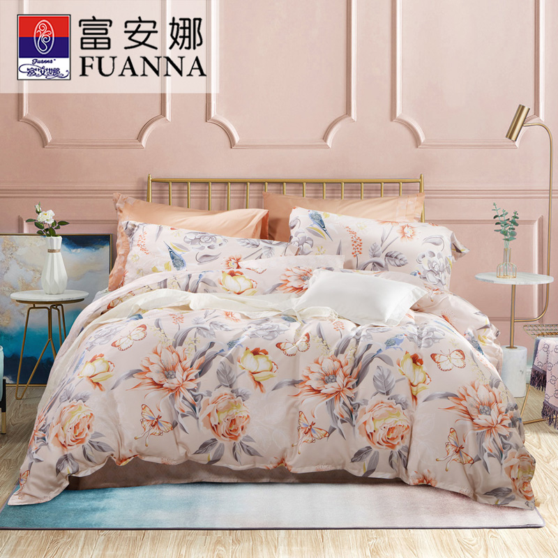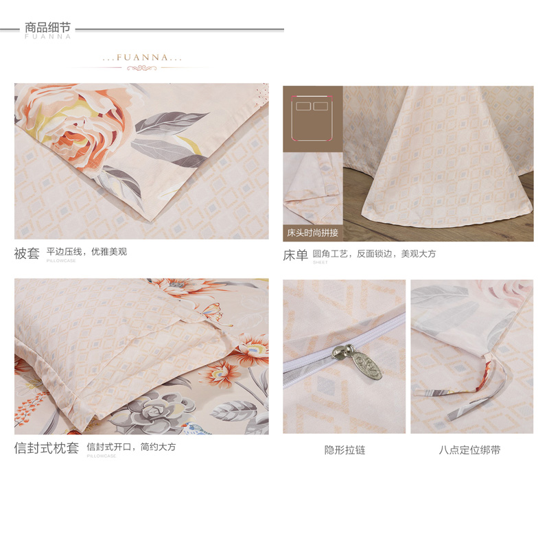 蝶梦花溪 床单四件套(被套1件床单1件枕套2件)(适合1.8米床)【纯棉/橙色】 |