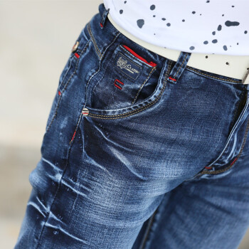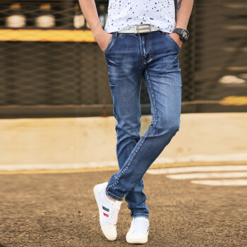 牛仔裤男修身2020春夏季韩版休闲裤男弹力小脚裤子男士时尚水洗牛仔青少年运动长裤男装潮 005浅蓝 30-2尺3 |