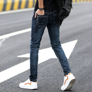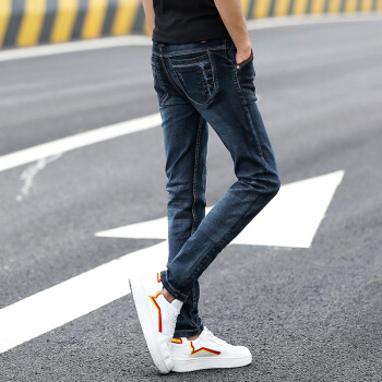 牛仔裤男2020春夏修身小脚裤男韩版休闲裤子男士潮流水洗牛仔直筒长裤青少年百搭运动裤男装 002蓝黑 30码-2尺3 |