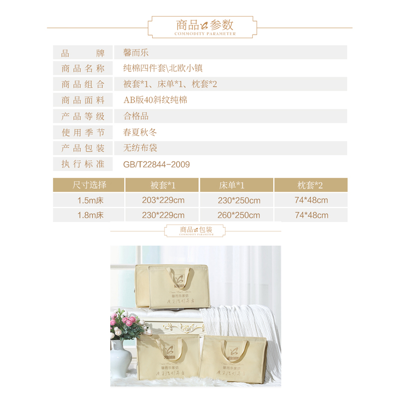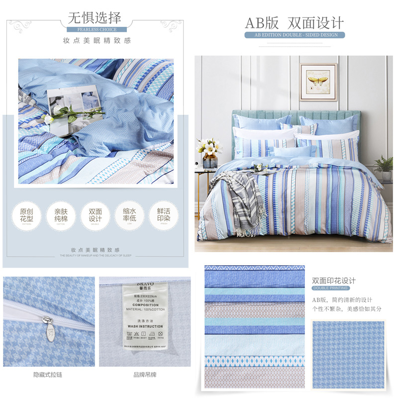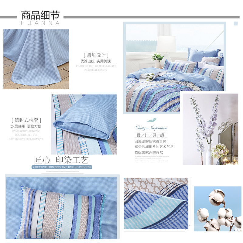 北欧小镇 床单四件套(被套1件床单1件枕套2件)(适合1.5米床)【纯棉/蓝】 |