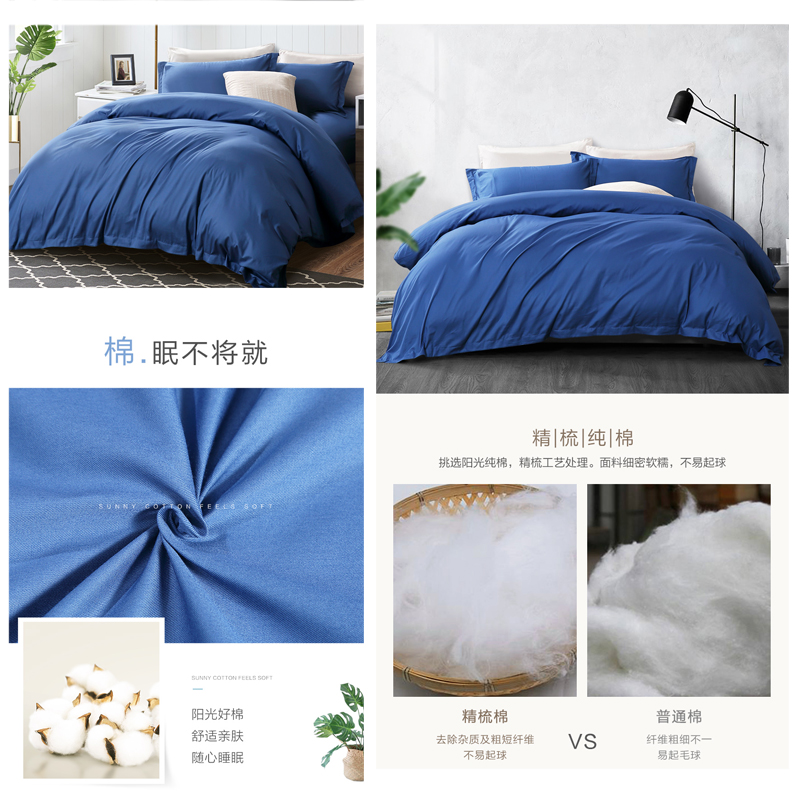 魅蓝雅调 床单四件套(被套1件床单1件枕套2件)(适合1.5米床)【纯棉缎纹/蓝】 |