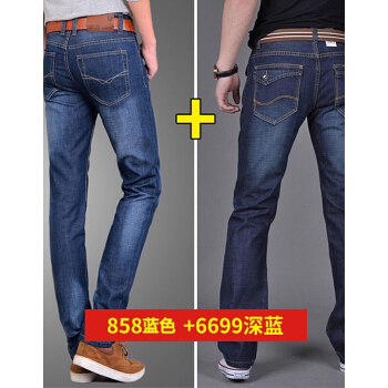 【店长推荐 99元两条】牛仔裤男2020春夏季新款男士男裤休闲款修身直筒裤子男装 6699深蓝+858蓝色 30(腰围=2尺3) |