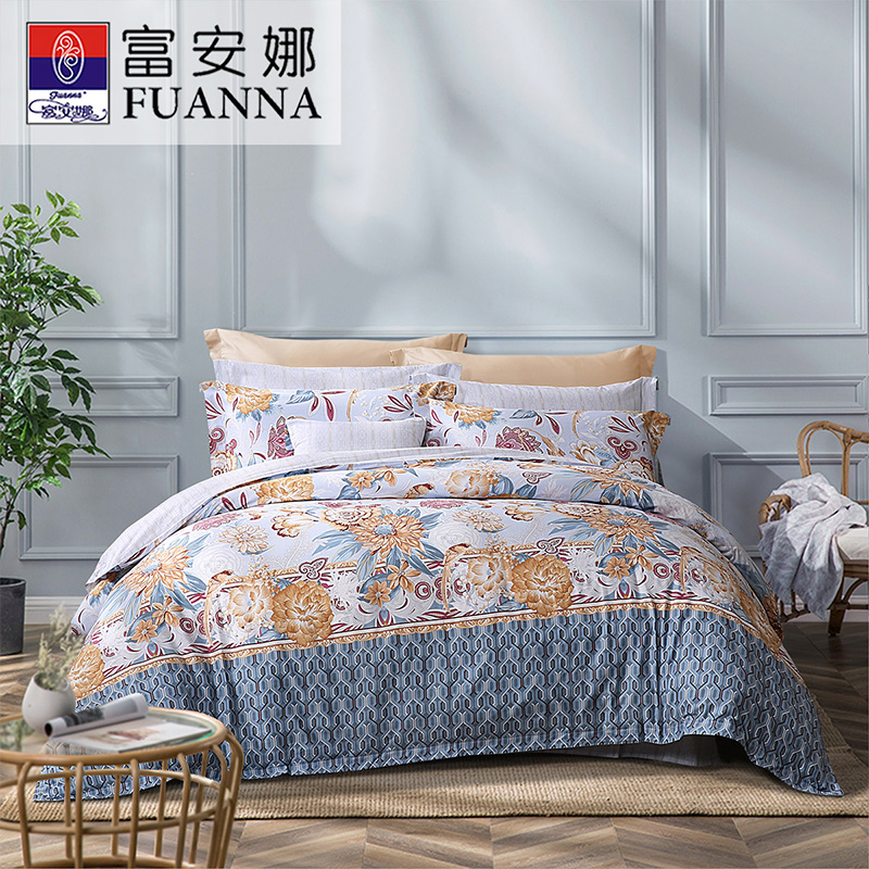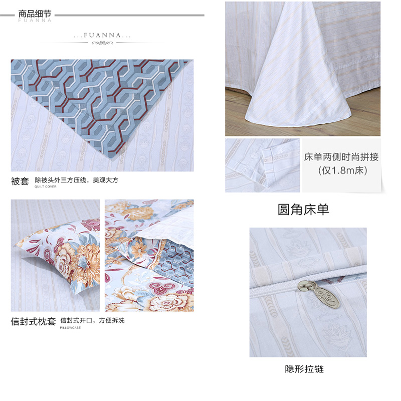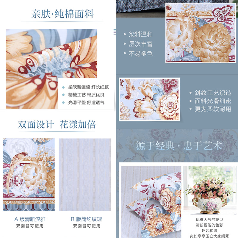 一眼芳华 床单四件套(被套1件床单1件枕套2件)(适合1.8米床)【纯棉/蓝】 |