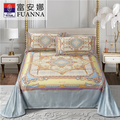 神秘殿园 倾城凉席床单款三件套(凉席1件枕套2件)(适合1.8米床)【竹纤维/蓝】 |