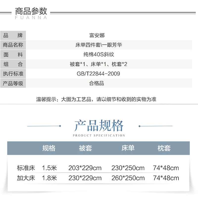 一眼芳华 床单四件套(被套1件床单1件枕套2件)(适合1.5米床)【纯棉/蓝】 |