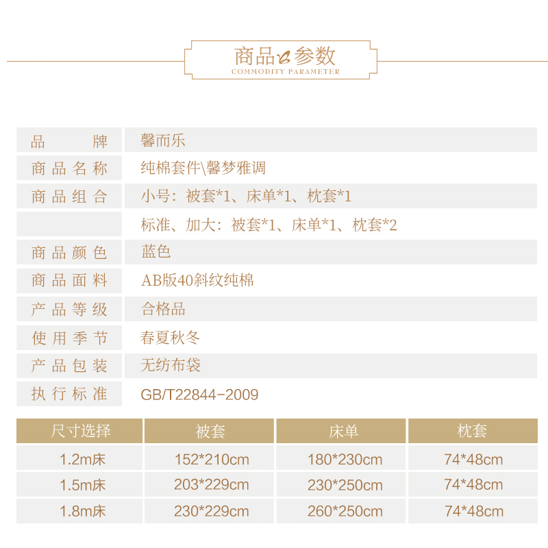 馨梦雅调 床单三件套(被套1件床单1件枕套1件)(适合1.2米床)【纯棉/蓝】 |