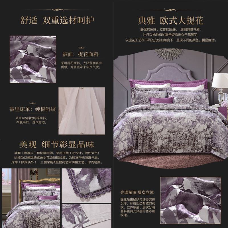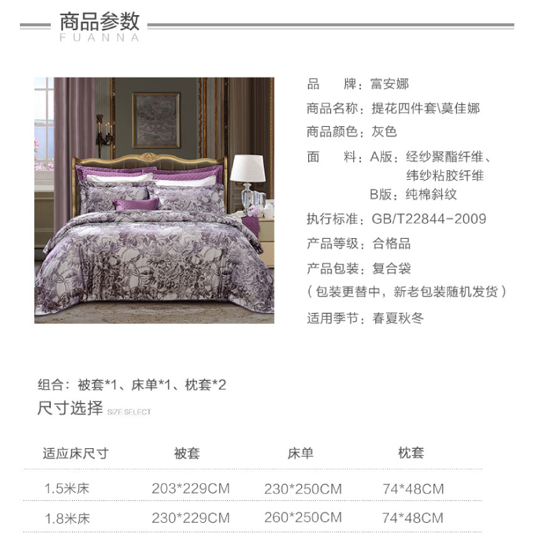 莫佳娜 床单四件套(被套1件床单1件枕套2件)(适合1.8米床)【A版:涤粘提花;B版:纯棉/灰】 |