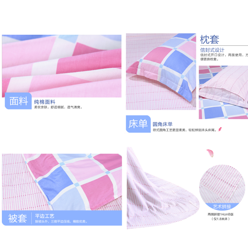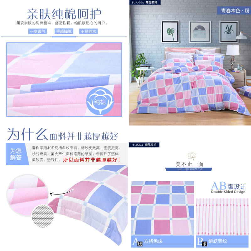 青春本色床单四件套(被套1件床单1件枕套2件)(适合1.5米床)【纯棉/粉】 |