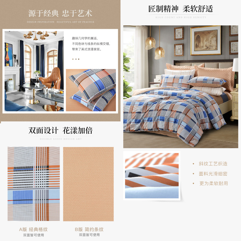 慢调时光 床单四件套(被套1件床单1件枕套2件)(适合1.5米床)【纯棉/蓝】 |