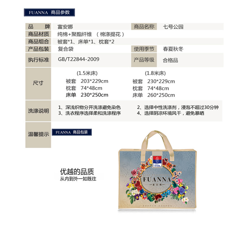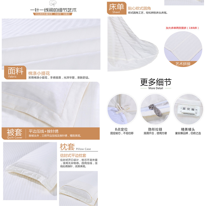 七号公园 床单四件套(被套1件床单1件枕套2件)(适合1.8米床)【涤棉提花/米白】 |
