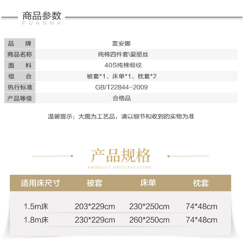爱丽丝床单四件套(被套1件床单1件枕套2件)(适合1.8米床)【纯棉缎纹/粉】 |