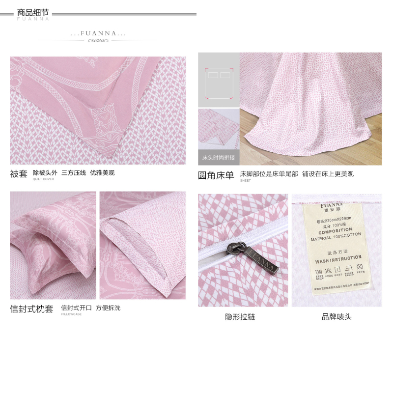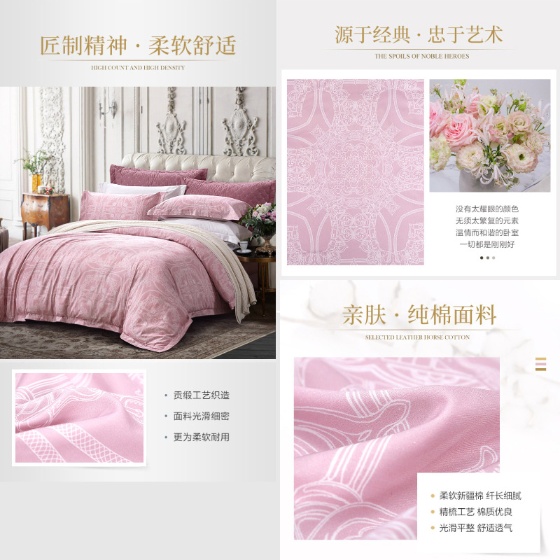 爱丽丝床单四件套(被套1件床单1件枕套2件)(适合1.5米床)【纯棉缎纹/粉】 |