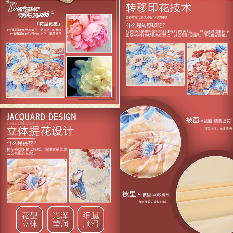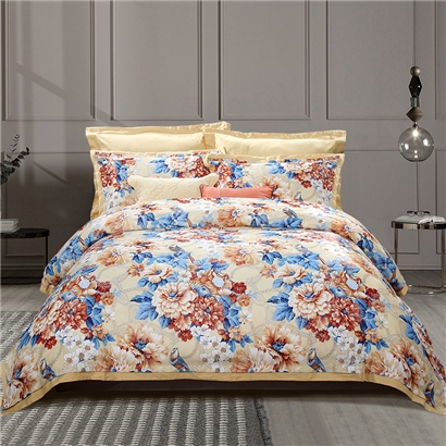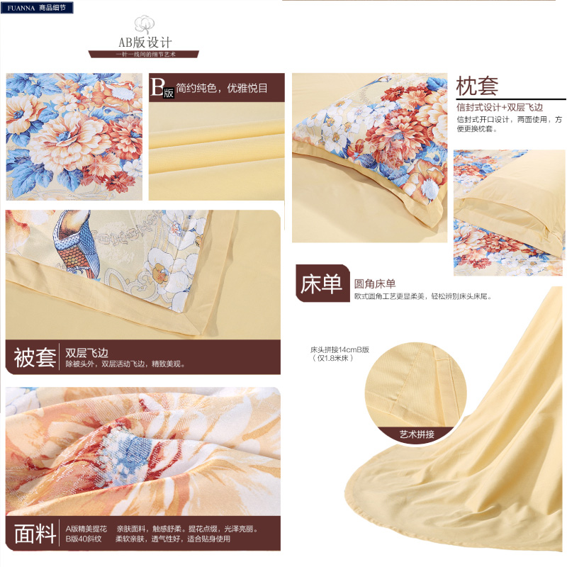 秋月迎霜 床单四件套(被套1件床单1件枕套2件)(适合1.8米床)【涤棉提花+纯棉/黄】 |