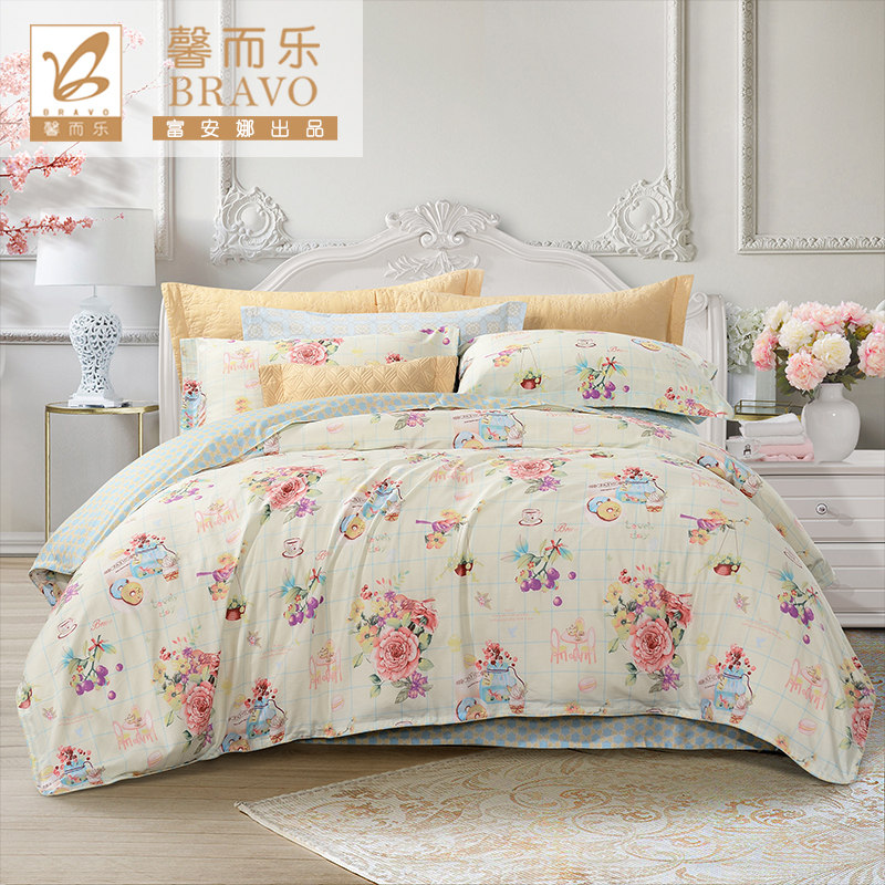 秋庭宴 床单四件套(被套1件床单1件枕套2件)(适合1.5米床)【面料:纯棉40支斜纹/黄】 |