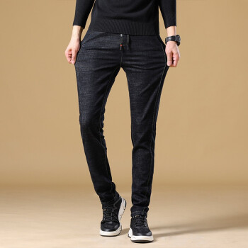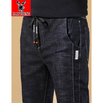 PLAYYOUNG 牛仔裤男修身夏季休闲裤男士薄款夏天长裤子直筒大码春秋韩版潮流潮牌百搭 326黑色-常规款 31 |