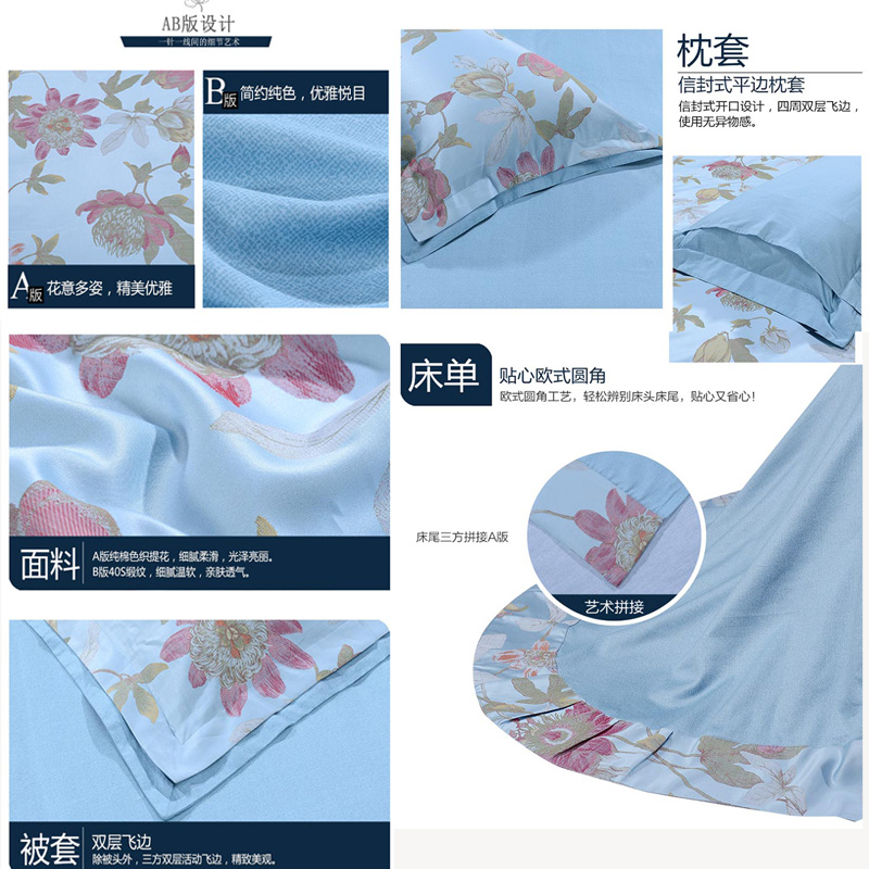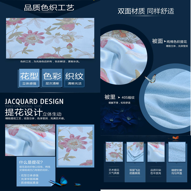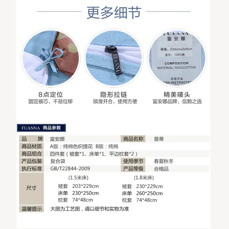 曼蒂 床单四件套(被套1件床单1件枕套2件)(适合1.8米床)【纯棉色织提花+纯棉/蓝】 |