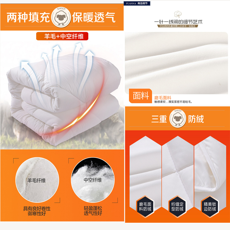 进口混合羊毛被(被芯一件)(适合1.8米床)【填充物:进口羊毛+聚酯纤维/白】 |