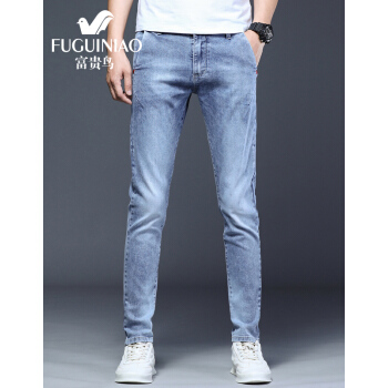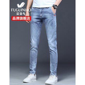 富贵鸟牛仔裤男2020夏季新品韩版潮流修身小脚裤男士弹力休闲裤子男裤 8605浅蓝 30 |