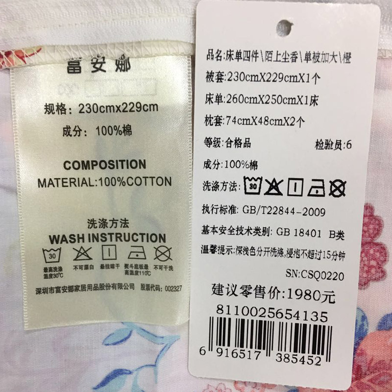 陌上尘香床单四件套(适用1.8米床)(被套1件床单1件枕套2件)【高支高密棉/橙】 |