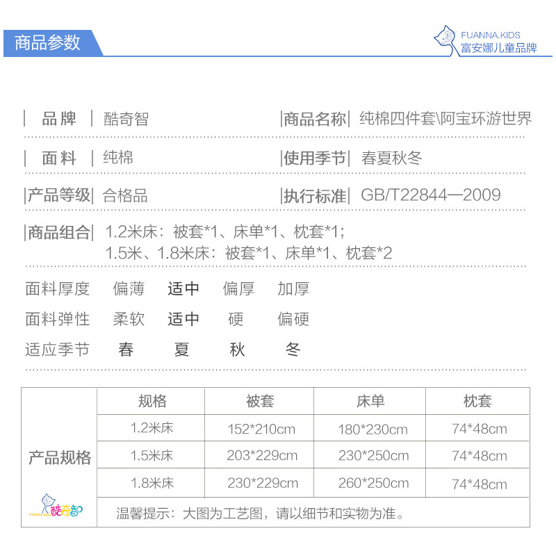 阿宝环游世界床单四件套(适用1.8米床)(被套1件床单1件枕套2件)【纯棉/蓝】 |