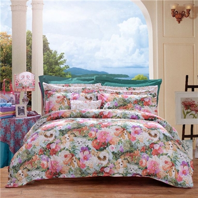 萌宠庄园床单四件套(适用1.5米床)(被套一件床单一件枕套两件)【100%棉/粉】 |