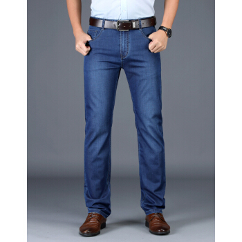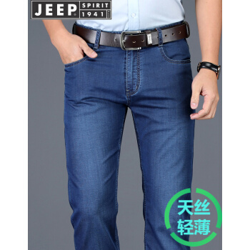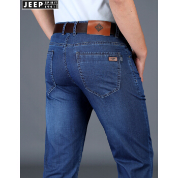 吉普JEEP牛仔裤男直筒薄款裤子男2020夏季新款商务休闲男装长裤微弹力男裤 2180#薄款 蓝色 33(腰围2尺5) |
