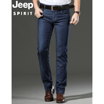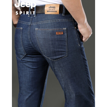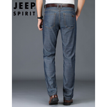 JEEP牛仔裤男宽松夏季薄款天丝修身直筒长裤商务休闲高腰大码弹力冰丝中老年爸爸装男士裤子 J8041灰蓝色 33 |