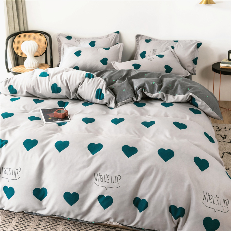 清新时尚ins洛卡棉四件套【洛卡棉(聚酯纤维)/心恋-浅灰】 |