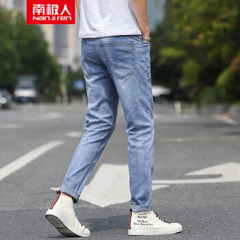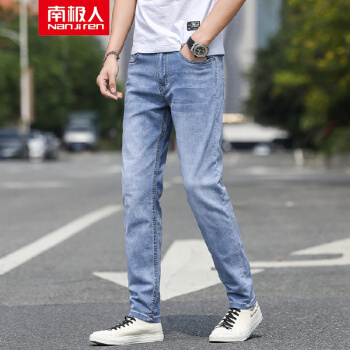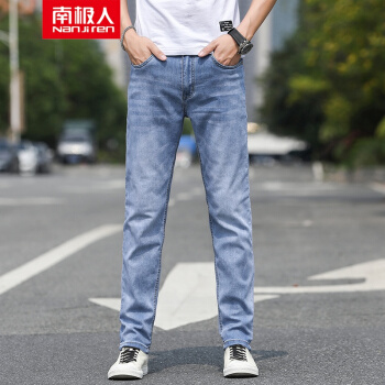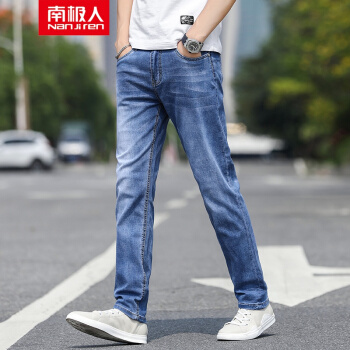 南极人牛仔裤男夏季薄款青年时尚透气裤子男商务休闲裤男宽松长裤男士弹力加肥加大码直筒牛仔男裤 浅蓝色 31 |