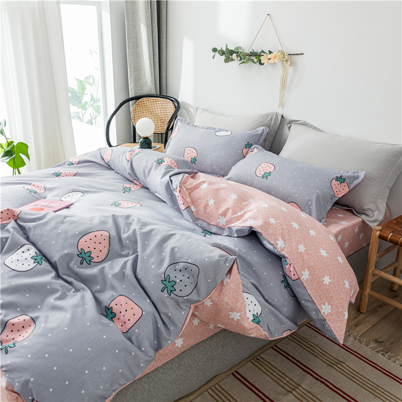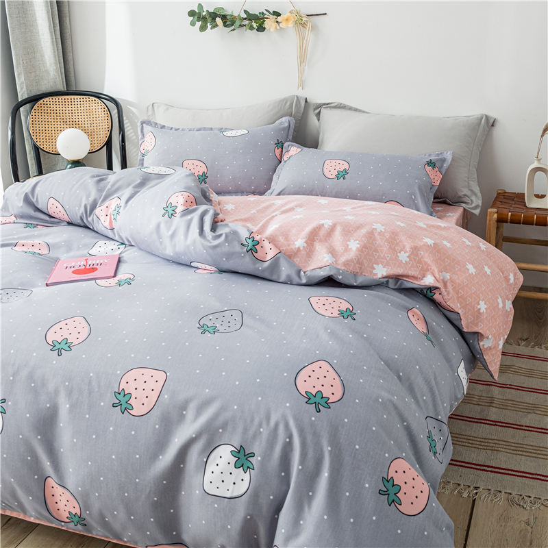 清新时尚ins洛卡棉四件套【洛卡棉(聚酯纤维)/草莓圣代】 |