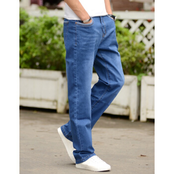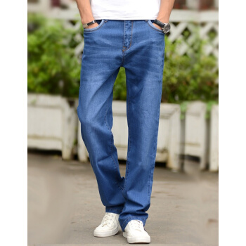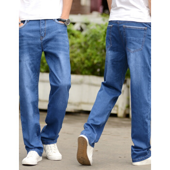 潮酷胖胖熊 牛仔裤男弹力宽松直筒裤 春夏季薄款大码男裤 加肥加大码休闲牛仔长裤 浅蓝色012# 36(2尺8) |