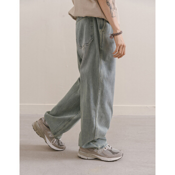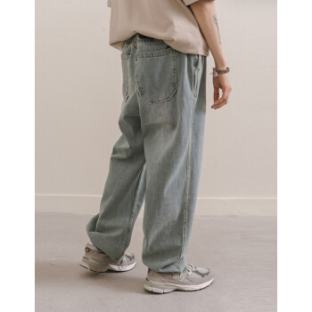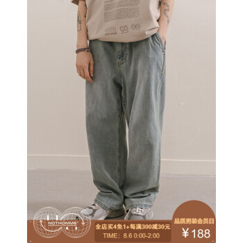 NOTHOMME潮牌春季矿工洗水浅色基本款牛仔裤男士宽松直筒休闲长裤 水洗蓝 L |